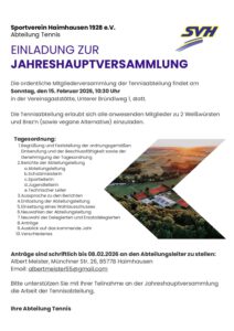die Kegelabteilung des SV Haimhausen veranstaltet die 8. Dorfmeisterschaft, zu dem wir alle herzlich einladen Wann: am 21. März 2026 ab 9:00 Uhr Wo: Kegelbahnen am Feuerwehrhaus Mitzubringen: saubere Hallenturnschuhe Eine Mannschaft besteht aus 4 Teilnehmern (um einen fairen Wettkampf gewährleisten zu können, ist nur ein aktiver Sportkegler pro Mannschaft zugelassen). Es … Weiterlesen →