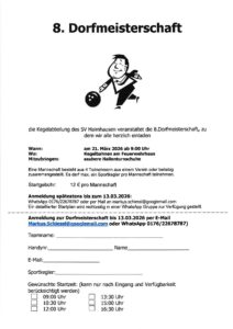 Abt. Turnen am Mittwoch, den 18.März 2026, um 19.30 Uhr in der Vereinsgaststätte, Unterer Bründlweg 1, Tagesordnung: 1. Begrüßung und Feststellung der Anwesenheit 2. Berichte – Abteilungsleiter – Kassier – Schriftführer – Technischer Leiter Volleyball 3. Aussprache zu den Berichten 4. Entlastung der Vorstandschaft 5.Anträge … Weiterlesen →
