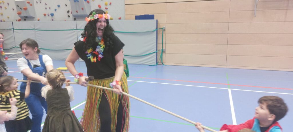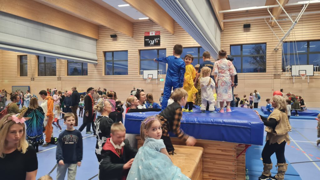 Bei fetziger Stimmungsmusik und sportlich bewegten Spielen verging der Nachmittag für Groß und Klein wie im Flug. Das rund 15köpfige Team der veranstaltenden Abteilung Turnen hatte den Nachmittag zur Freude der großen und kleinen Besucher perfekt organisiert. Deren ausgefallene Kostümierung und fantasievollen Maskeraden trugen ein Ihres zur fröhlichen Feier bei.